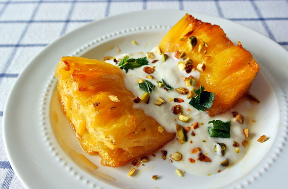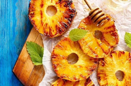 菠蘿是生活中比較常見的一種水果,它的吃法比較多,烤著吃就是其中比較新奇的一種吃法,在高溫作用下,水分會流失,菠蘿蛋白酶也會失去活性,酸味會有所降低,吃起來整體口感會更甜一些。