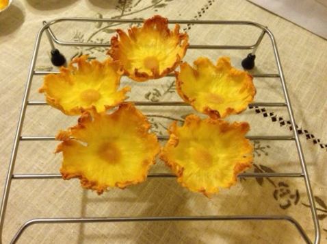 烤菠蘿的做法烤菠蘿簡易的做法就是將果肉切成塊,圓餅形狀,或者扇形的都可以,看自己的喜好。 厚度大概是在2—3厘米左右,不需要太厚。 因為菠蘿和鳳梨的口感不同,如果選用的是菠蘿,需要浸泡在鹽水中2—3分鐘,將菠蘿中那種略澀的感覺給去掉,這樣燒烤之后口感才會更加的美味。 然后撈出來之后,最好用吸紙將菠蘿表面的水分給吸干,都準備好了之后,就可以開始重頭戲,準備燒烤了!本身菠蘿就已經很甜了,蜂蜜的話可以看心情,我個人是不太建議刷的。放在炭火上或者是烤箱里去烤制,等待時機就好了。 |