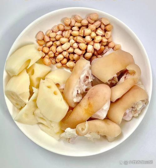 三伏天已經到了末期,中伏已經過了,處于中伏到末伏的期間,現在天氣驟然上升,氣溫直逼40攝氏度,很多地方都達到橙色高溫預警,我們都不想出門,更別提出門游玩和吃飯了。對于一個愛做飯的人,不喜歡點外賣和吃速凍食品,家里有孩子和老人,肯定要注重飲食搭配,不能吃太油膩的食材。今天為家里人制作一款每周必喝的鮮湯——花生蓮藕燉豬蹄湯,豬蹄口感很Q彈,湯汁鮮美,解油膩,滋補氣血,讓氣色越來越好。很多人沒有喝過這款花生蓮藕燉豬蹄湯, 做法并不難,一起來看看吧。三伏天期間,常給家人喝這湯,簡單燉一鍋,營養鮮美,增強抵抗力。