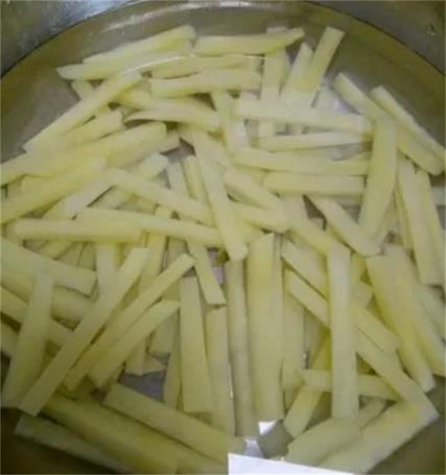 將土豆切成長條狀,厚度約為0.5厘米。如果你喜歡薯條更加酥脆,可以將土豆切得稍薄一些。切割時可以使用刀具或者薯條切割器,確保土豆條的形狀均勻一致。切割完成后,將土豆條放入清水中浸泡片刻,以去除多余的淀粉。