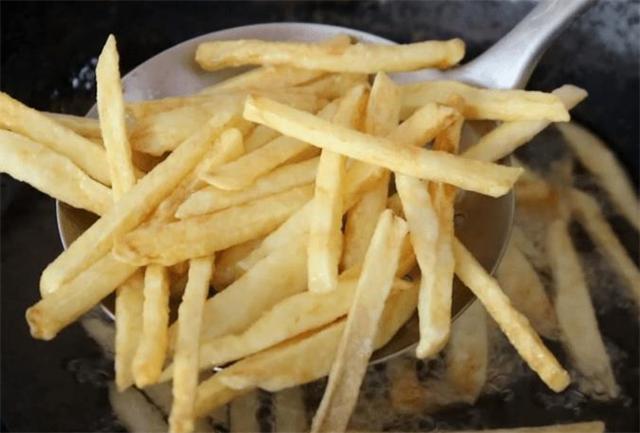 再將切好的土豆條均勻地放入油鍋中,油溫控制在180℃左右。炸制的時間大約為5-7分鐘,直到薯條變得金黃酥脆。炸制完成后,用廚房紙巾瀝干多余的油脂,撒上適量的鹽和調味料,攪拌均勻即可。