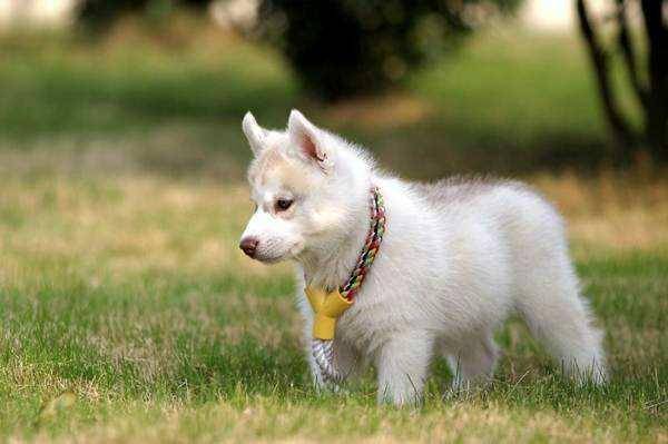 白色 白色哈士奇也就是人們常說的雪哈,渾身毛發(fā)雪白雪白,有兩種不同的白,即純白和伊莎貝拉白,這兩種都非常少見,這類哈士奇屬于基因突變而成。