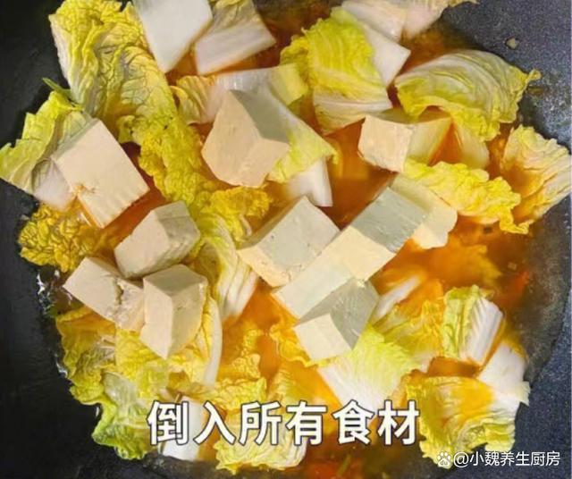 食材清單:選購一棵白菜(或者選擇娃娃菜,葉子非常茂密,口感非常清甜,膳食纖維含量很高,一定程度上幫助刮油排便,減少脂肪的堆積,被稱為“窮人的菜王”),豆腐250-300克左右(豆腐分為很多品種,豆腐是優質大豆制作而成,口感入口即化,食用方法很多,用來煲湯更利于營養的吸收),西紅柿一個,少許食用油或豬油,生抽一勺,一小勺食鹽,蠔油半勺,清水700毫升左右,香蔥和大蒜少許,胡椒粉半勺,其他佐料。