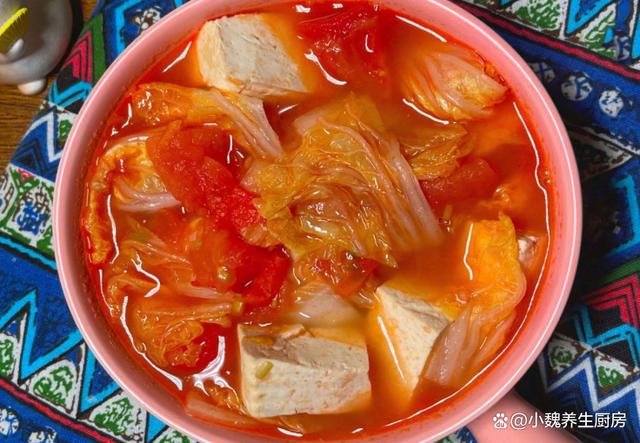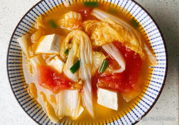西紅柿白菜豆腐湯是一款減脂期的鮮湯之一,食材不用花費太多錢,富含大量的維生素和番茄紅素,湯汁十分濃稠,酸甜開胃,補充水分和維生素C,激發我們的味蕾,補水嫩膚,提供鈣源,早食早受益。
