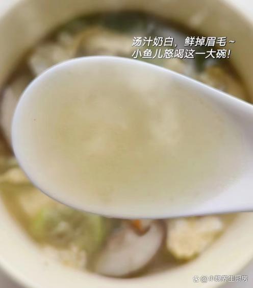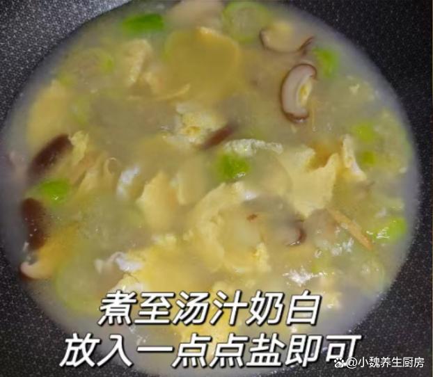 第六步:最后下入一些雞蛋塊,讓湯汁煮至奶白色,加上半勺味極鮮來提鮮,加上雞精,胡椒粉和食鹽,用勺子攪動幾下,湯汁煮至入味。