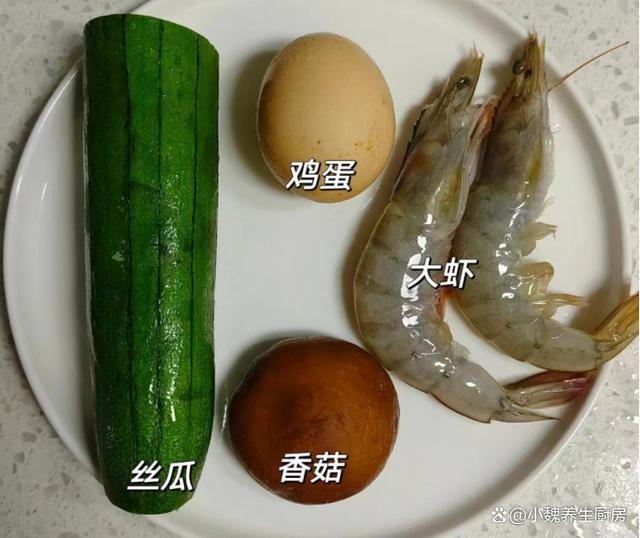 準(zhǔn)備一些食材:選購絲瓜100克(盡量要選擇細(xì)一點的絲瓜,這樣絲瓜非常鮮嫩,是制作絲瓜湯的首選,夏季可以多喝絲瓜湯,為肌膚補充維生素和水分,不懂吃可惜了),鮮活大蝦80克左右,香菇幾個(建議選擇新鮮香菇),植物油若干,幾片生姜,足量清水,一勺豬油,少許料酒,味極鮮半勺,一個雞蛋,一丟丟胡椒粉,食鹽若干,半勺白醋,香蔥若干根,香油幾滴,其他調(diào)味品。
