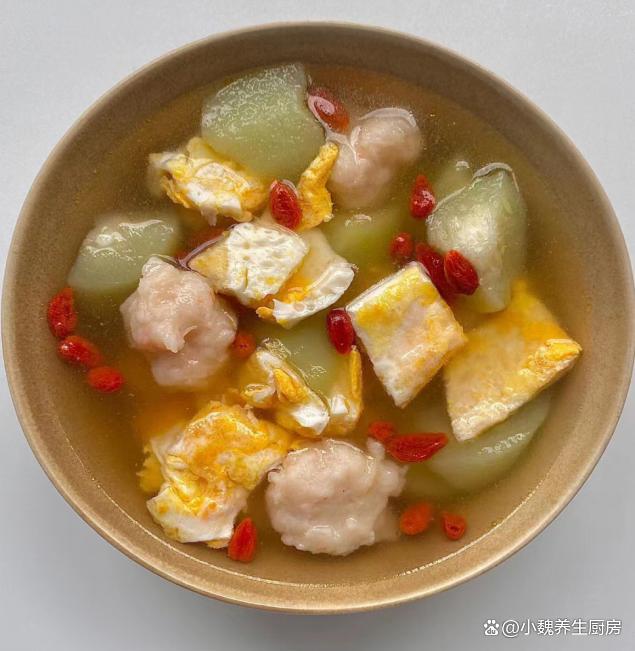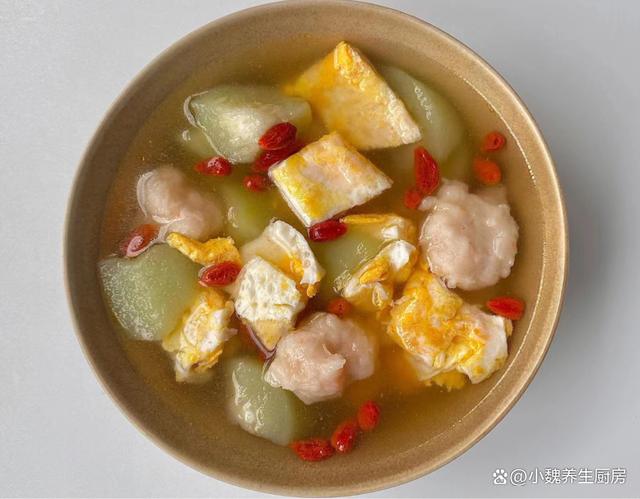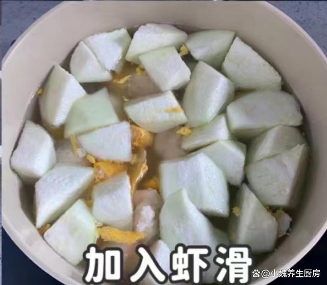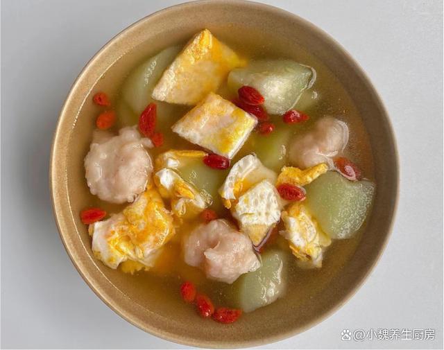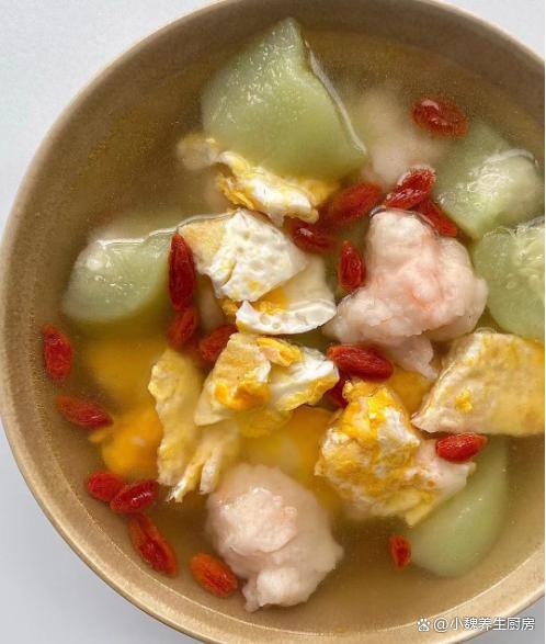 【絲瓜荷包蛋絲瓜湯的詳細做法】 食材清單:兩條新鮮圓絲瓜(絲瓜是夏季的熱門蔬菜,富含有許多的水分和維生素C,夏季容易中暑,可以多喝一些絲瓜湯,清涼解暑,為身體補充水分),枸杞子25克左右,新鮮土雞蛋2個,蝦滑200克(現(xiàn)在市面上有現(xiàn)成的蝦滑,也可以用新鮮大蝦制作而成,蝦滑的口感嫩滑,湯汁十分鮮美),植物油若干,熱水少許,食鹽少許,一丟丟胡椒粉,生抽一勺,冷水少許,干蝦皮15克左右,少許香油,雞精半勺,其他調(diào)味品。