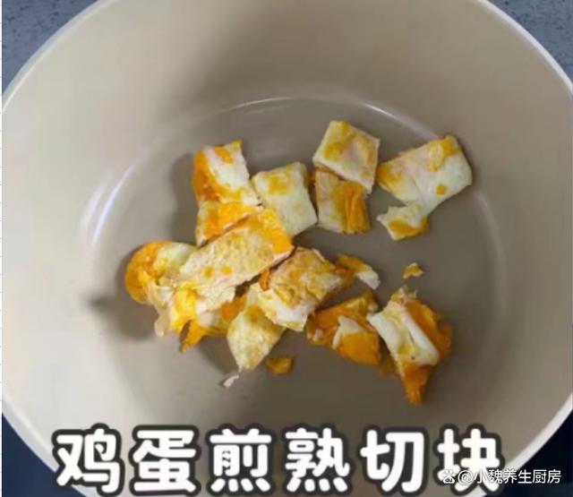 正確制作順序: 第一步:提前準備好新鮮絲瓜,土雞蛋,枸杞子和絲瓜,鍋底刷上少許食用油,讓油溫慢慢燒熱,雞蛋打在鍋底,兩面都煎至成型,用鍋鏟分成小塊。