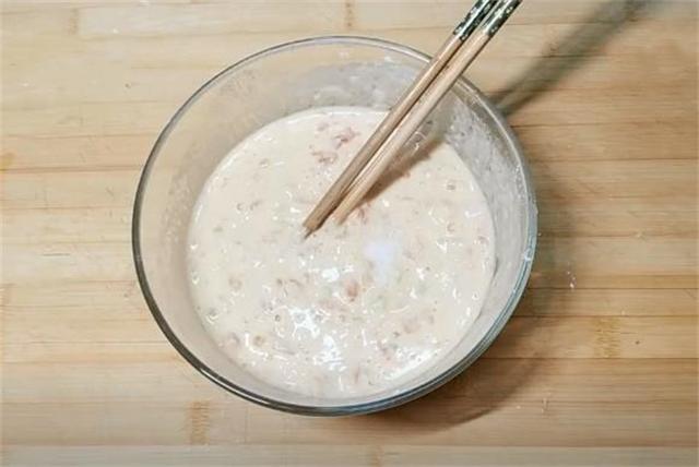 2.加入兩勺面粉,少許蔥花,然后再加清水調成略微粘稠的面糊,加入少許食鹽調一下咸味。