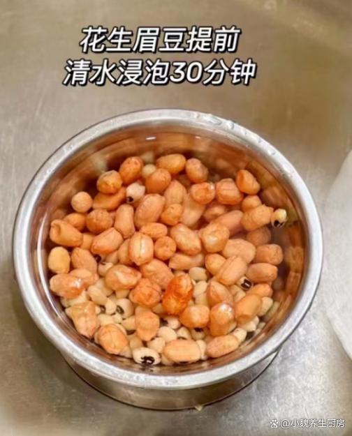 第一步:提前選購好青木瓜,眉豆,花生和豬骨,先把花生米和眉豆洗干凈,用清水浸泡30分鐘。