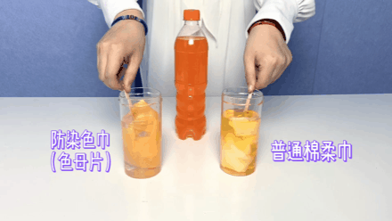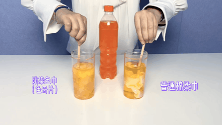 準備兩種不同的彩色液體,再加些面巾紙和吸色紙,用攪拌器模擬洗衣機的運行。 各位可以對比一下,清洗前后的結果,您就會明白它是多么的便利,一絲也不會有。