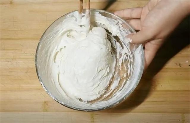 2.準備350g面粉,我們用堿鹽水和面,攪拌成粘稠高的面糊,一個方向旋轉上勁,這樣可以增加面粉的筋性。