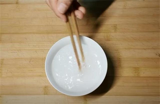1.在300g水中加入半勺堿面,半勺食鹽,用筷子攪拌均勻。