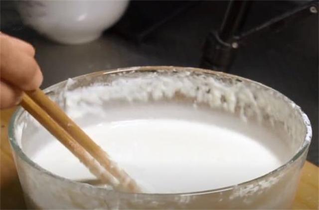 3.然后再用大約250g的清水和成面糊,面糊不要太粘稠,不然攤出的涼皮會很厚,調好之后蓋上蓋子靜置半個小時。(www.ws46.coM)