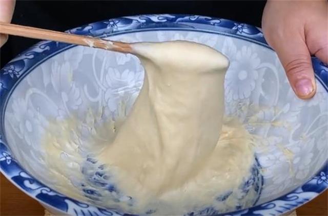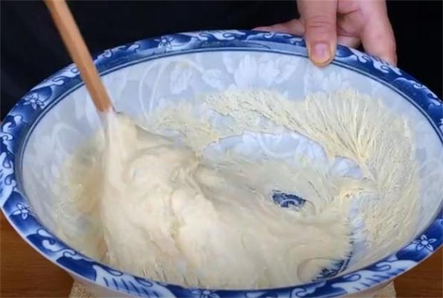 2.發好的面里面都是滿滿的蜂窩組織,說明這個面已經發酵好了,用筷子攪拌幾下,排一下里面的空氣。