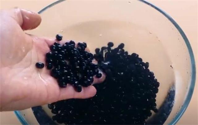 1.先倒一碗清水,把黑豆泡三個小時,泡到沒有硬芯就可以了,黑豆最好選擇非轉基因的,網上就能買到。