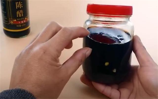 5.黑豆放涼以后,把它裝入一個干凈的瓶子里,接著加入陳醋,陳醋的量大概浸泡過黑豆2厘米左右。