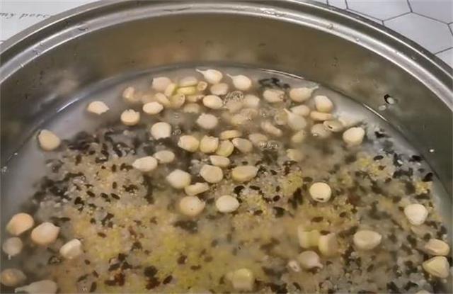 2.小米是粗糧,營(yíng)養(yǎng)非常的豐富,黑米口感香純,能夠健脾養(yǎng)胃,大米的蛋白質(zhì)含量特別高,再加入口感非常好的玉米粒,用清水清洗兩遍,洗米不要超過三遍,清洗的次數(shù)越多,營(yíng)養(yǎng)流失就越多,不用過多的揉搓,這是第一個(gè)關(guān)鍵點(diǎn)。