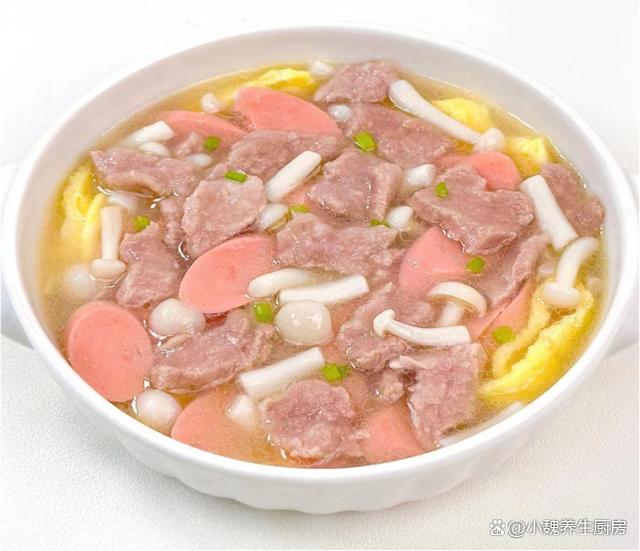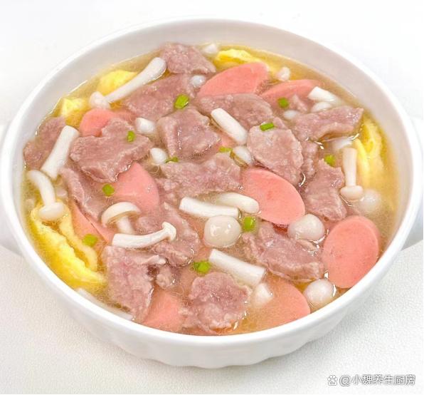海鮮菇火腿腸雞蛋滑肉湯是一款特別鮮美的湯品,食材非常平價,湯色很好看,鮮美極了,營養很全面,利于營養的吸收和代謝,改善食欲,內行人夏季都愛喝。