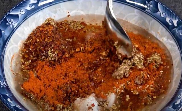 9.接下來把油溫繼續升高,升高至微微冒煙,油熱之后分三次澆到辣椒面里面,每次澆完之后用勺子攪拌均勻,第二次澆完之后攪拌至不冒泡,油溫再次升高,然后再次潑油,只有這樣才能炸出辣椒的香味,這樣做出來的辣椒油不會苦不會糊而且特別香,不管是做蘸料,還是拌涼菜都非常好吃,喜歡就收藏起來在家試試吧。 |