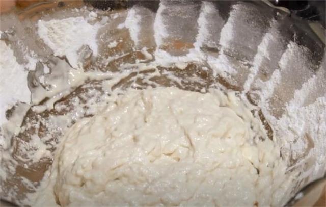 1.準備300g面粉,3g酵母粉,用200g溫水攪拌成粘稠的面糊。