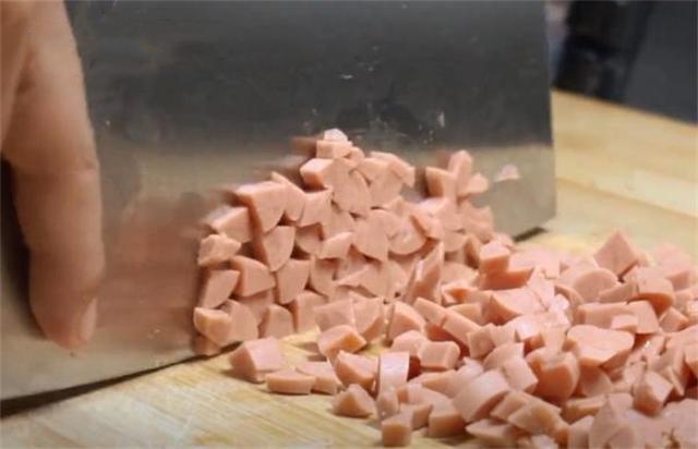 3.這個功夫我們準備點餡料,切點素火腿丁。
