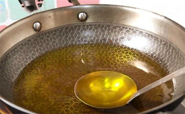 5.鍋內倒入適量食用油,油溫五成熱先把勺子放進油鍋里。