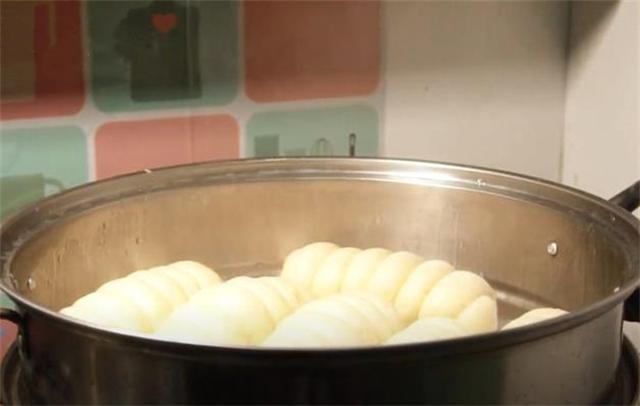 6.面團松弛好了,變得白白胖胖的,把面團放入鋪滿蒸籠紙的蒸屜中,鍋內上汽后中火蒸15分鐘,時間到關火再燜5分鐘即可出鍋。