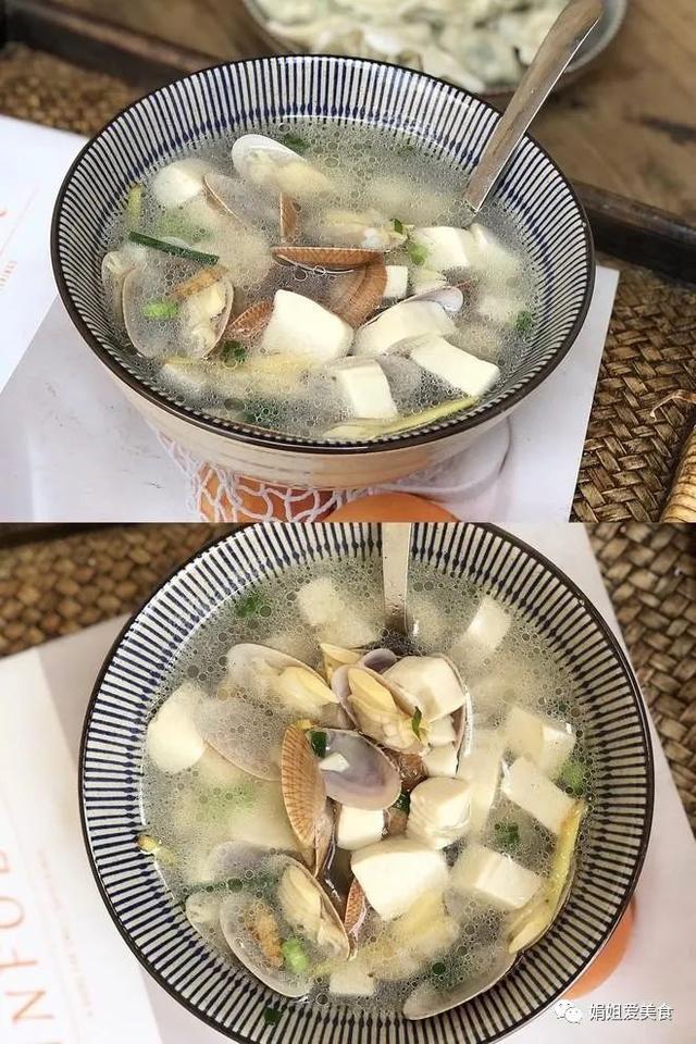 用料: 新鮮蛤蜊300克、豆腐一塊、姜片適量、蔥段適量、清水適量、鹽適量、料酒適量。 做法: 1.將蛤蜊用清水沖洗干凈,放在盆中浸泡30分鐘左右,讓蛤蜊吐出沙和雜質。 2.將豆腐切成小塊備用。 3.將姜切成姜片,蔥切成蔥段備用。 4.將蛤蜊瀝干水分,放入清水中加熱至沸騰,加入料酒焯水至蛤蜊開口。 5.用漏勺將蛤蜊撈出,放在碗中備用。 6.將清水倒入鍋中,加入姜片和蔥段,煮開后放入豆腐塊,繼續煮5-8分鐘。 7.將蛤蜊放入鍋中,加鹽調味,再煮1-2分鐘即可。 8.將蛤蜊豆腐湯盛出,撒上一些蔥花即可。 小妙招: