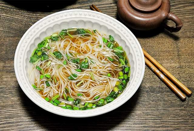 清湯掛面 用料: 空心掛面(適量)、雞肉或牛肉(適量)、蔥姜蒜末(適量)、醬油(適量)、鹽和雞精(適量)、青菜(適量)、白芝麻(適量) 做法: 1. 將雞肉或牛肉洗凈,切成片狀; 2. 鍋中加入適量清水,放入蔥姜蒜末和雞肉或牛肉,煮沸5-10分鐘; 3. 同時另一口鍋加水煮沸,放入掛面,煮熟后撈出放入碗中; 4. 取出煮好的雞肉或牛肉,切成絲狀; 5. 在碗中加入適量醬油、鹽和雞精,放入切好的肉絲,攪拌均勻; 6. 在鍋中再加入適量清水,放入青菜煮沸,撈出備用; 7. 將煮好的清湯倒入掛面碗中,撒上煮熟的青菜和白芝麻即可。