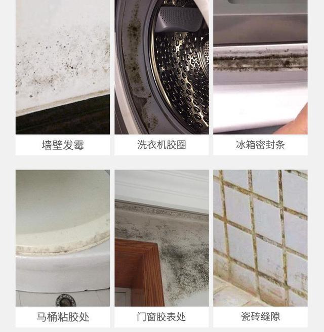 3、味道清新,無刺激性 家中使用的任何一種清潔用品,本人最忌有刺鼻的氣味,例如84消毒水,若非必要,通常不會使用;本產品質地透明,無刺鼻氣味,科學配方,無任何危害人體健康的成分,可放心使用。 4、適用范圍廣 并不是只有廁所才會有霉菌,任何一個潮濕的地方都有可能有霉菌,例如:洗菜盆,洗衣機膠圈,冰箱隔熱條,墻角的縫隙等等。 這種除霉膠適合于各種霉菌滋生的環境,因此,平時在家里除霉的時候,多準備一些總是好的。