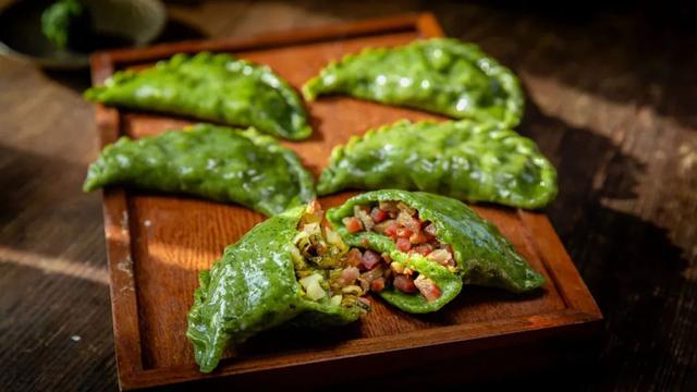 2、具體做法如下: 艾草洗凈,開水加一點小蘇打,倒入艾草焯水30秒-1分鐘,冷水沖涼(加入小蘇打,可保持色澤鮮綠)加入和艾草齊平的水入料理機攪打成泥,香蔥切碎,胡蘿卜去皮切碎,面粉里加入雞蛋、鹽,倒入艾草泥、五香粉(艾草泥不要一次倒入,要分次倒入)攪拌均勻至無干粉、面疙瘩出現(用艾草泥或是水來調節)加入蔥碎、胡蘿卜碎再次拌勻,攪拌成面糊(面糊不要太稠,勺子挑起可以持續的流動)不沾鍋燒熱, 用紗布沾油抹勻,用勺子舀適量面糊倒入鍋中,迅速旋轉鍋體,讓面糊盡量薄厚均勻的布滿鍋底,呈圓餅狀(要用中下火),看到面餅顏色變深,一面烙好后翻面烙另一面,直到兩面出現餅花成熟為止, 然后重復10-12步,直到面糊用完為止,取一張蛋餅,涂上適量番茄沙司或是其它醬料,放入一根火腿腸,卷起,卷緊,然后切段即可食用! 做法四、艾葉怎么做好吃 1、用料:艾葉半斤、雞蛋4個、鹽少量、食用油大量。 2、艾葉經過初步摘除黃葉和粗梗之后,清洗干凈,然后切成二分之一食指長短,備用。 3、熱鍋放食用油,油需要放多點。 4、油鍋熱好后,放入備好的艾葉,大火進行翻炒。 5、待艾葉殺青后,打入雞蛋,拌勻,然后繼續翻炒。 6、雞蛋凝結成形,即熟了之后,倒入一小碗清水,放入適量食用鹽,翻炒均勻即可出鍋。 二、艾草怎么吃 1、艾草青團:將所有食材洗凈,切碎,攪拌成餡;新鮮艾葉攪碎與糯米粉攪拌成面團,再依次分成小塊,將餡包裹住、蒸熟即可。 2、艾葉煮雞蛋:新鮮艾葉洗凈、煮水、撈出,打入雞蛋煮熟,最后加入紅糖調味即可。 3、艾葉生姜茶:新鮮艾葉洗凈、煮水、撈出,打入雞蛋煮熟,最后加入紅糖調味即可。 |