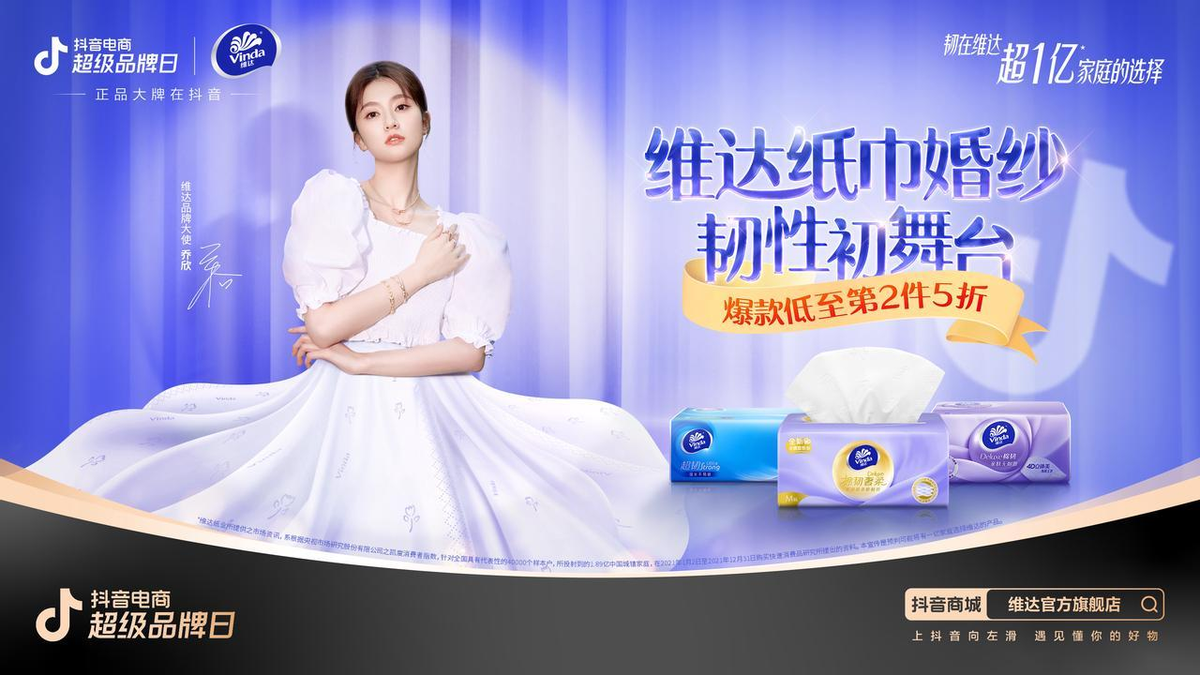 紙巾婚紗芭蕾舞大秀溫馨開場,沉浸式氛圍直播促進銷售轉化 3月1日,維達聯合抖音電商超級品牌日發布一則先導片預告視頻,開啟維達紙巾婚紗IP 11年來在抖音的舞臺首秀。做婚紗、去巴黎、能下水、能刺繡......維達紙巾婚紗以一種震撼人心的姿態向大眾呈現了紙巾的極致之韌,既向用戶展現了產品品質,又與女性自身的“韌性”相映照,引發女性群體情感共鳴。 3月4日,以“維達紙巾婚紗韌性初舞臺”為主題的芭蕾舞大秀在維達抖音官方直播間直播,維達品牌大使喬欣身穿紙巾婚紗,攜手抖音萌娃@王小麥 獻上精美紙巾婚紗芭蕾舞大秀,與眾多親子家庭一起展現中國家庭韌性成長故事,進一步吸引消費者,讓自己與孩子一起韌性成長。之后喬欣身穿紙巾婚紗做客直播間,主播身穿婚紗氛圍感拉滿,沉浸式氛圍直播吸引大量粉絲和潛在消費者關注并參與活動,穩定提高直播間粉絲留存量,促進銷售轉化,GPM3000 助力品牌登頂行業品牌榜 |