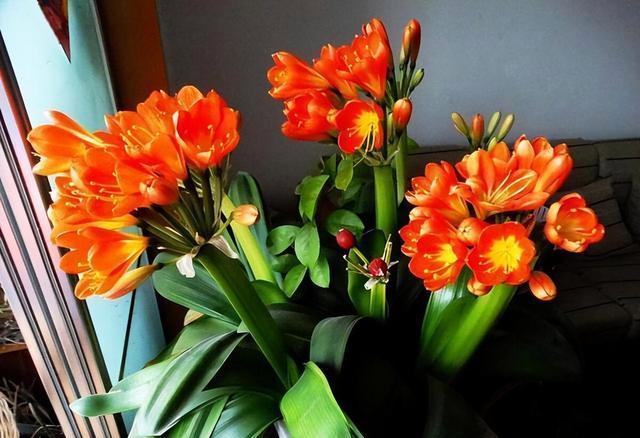 1、君子蘭 君子蘭,寓意極好,觀賞價值高,壽命長,可養殖多年,是一朵寓意極好的花兒。 一朵嬌艷的君子蘭,擺放在大廳最顯眼的地方,搭配著一盆簡約大氣的花盆,一下子就吸引了所有人的目光。 它不像其他的花草、盆景那樣不好養,但也很好看,多養幾年,以我對它的了解,想要把它養好也不是什么難事,說不定一年就能開花兩次。