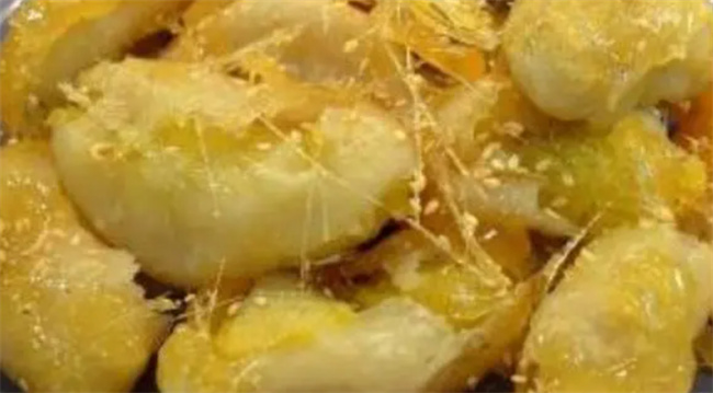 3.拔絲香蕉 所需食材包括香蕉、淀粉、食用油和冰糖。將香蕉剝皮切塊,然后將香蕉塊放入容器中,加入適量的淀粉,輕輕地攪拌均勻,讓香蕉裹上一層淀粉。將鍋中的油燒至七成熱,放入裹上淀粉的香蕉塊,炸至微微變黃,另起鍋倒入油,加入白砂糖,小火炒糖色,倒入香蕉塊,均勻裹上糖漿即可。