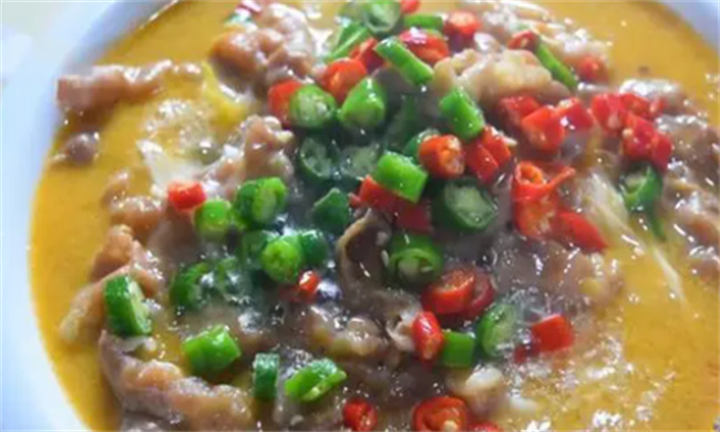 5、調好味道后,再次將湯汁煮沸,將肥牛片一塊一塊地放入鍋中,要快速放入,然后蓋上鍋蓋,關火燜煮3分鐘。3分鐘后,將鍋中的所有食材轉移到湯盆中。接著,將青紅椒圈放在上面,最后用熱油將香辣味爆出。 這道番茄酸湯肥牛,酸爽的番茄湯汁與鮮嫩的肥牛相結合,口感豐富多樣,令人垂涎欲滴。番茄的酸味與肥牛的鮮美相互融合,帶來獨特的風味享受。在品嘗時,可以先將金針菇放在碗底,再將燙熟的肥牛片放在上面,最后倒入番茄酸湯,讓肥牛片在熱湯中熟透。每一口都充滿了酸辣的美味,令人回味無窮。 |