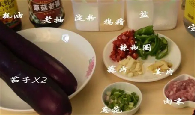 1、準備食材:2個茄子、1個青辣椒和1個紅辣椒、2瓣大蒜、1塊生姜、1個小蔥、50克豬肉末、1湯匙耗油、1茶匙老抽、2湯匙生抽、1湯匙淀粉、1茶匙雞精、1茶匙食鹽。 2、茄子洗凈,去掉頭尾,切成約6厘米長的小段,對半切開,切成小條。然后,把茄子放到一個湯盆里面,加入沒過茄子的清水,加入1湯匙的食鹽,讓茄子在鹽水里面泡一會。這樣可以讓茄子吸收水分,炸茄子的時候吸油量就會減少。 3、準備一個調味碗,加入1茶匙食鹽、1茶匙雞精、少量老抽、2湯匙生抽、1湯匙淀粉和少量清水,攪拌均勻備用。