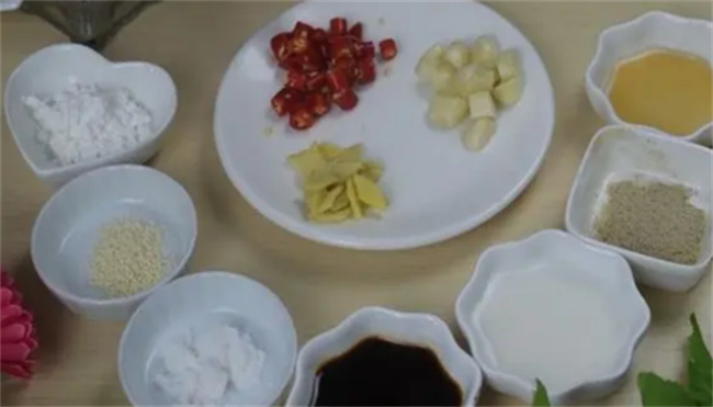 1、需要準備好雞腿肉、黃瓜、胡蘿卜、青紅椒、小米椒、姜片、大蒜、食鹽、雞精、白糖、生抽、胡椒粉、料酒。將清洗干凈的雞腿肉切成小塊備用,黃瓜、胡蘿卜、青紅椒切成小顆粒備用。 2、將雞腿肉加入食鹽、雞精、生抽、胡椒粉、淀粉等調料中腌制一會兒。在此期間,我們可以把碗汁調制好,將雞精、食鹽、老抽、生抽、淀粉和清水拌勻備用。