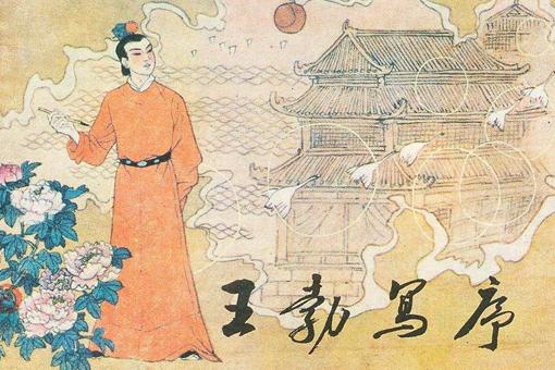 李元嬰表示悔改,但事后仍置法章而不顧。李治只好調李元嬰赴蘇州任刺史。又過一年,李元嬰再次被貶至洪州。李元嬰還是不以為然,認為洪州是個好地方,決定修一座樓閣,以便會客交友。歷時數年,樓閣終于竣工,李元嬰廣邀文朋詩友前往觀賞。因他封號滕王,新樓閣便被稱為滕王閣。 眾人對滕王閣稱贊不絕,遂讓在洪州已小有名氣的孟學士作賦,孟學士來之前便打好腹稿,意欲一顯身手,但他想等別人作過之后再作。這時尚未成名的王勃站起來,走向書案坐下,神情凝注,手拈墨碇緩慢磨墨。滕王見他慢吞吞的樣子,便提出先讓眾人喝酒,王勃寫一句就讓下人報一句。過了很長時間,王勃寫下第一句“豫章故郡,洪都新府”,下人連忙拿去交與滕王諸人。眾人覺得不過老生常談,實在平淡無奇。不久又報來“星分翼軫,地接衡廬”,眾人便開始關注起來。一直到了“落霞與孤鶩齊飛,秋水共長天一色”,眾人忍不住拍手稱贊,趕忙讓王勃來桌上喝酒。
