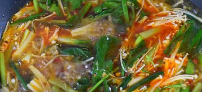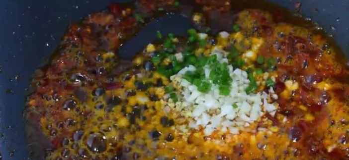 接下來,起鍋加入食油,燒至5成熱,然后加入2湯匙的豆瓣醬,小火炒出紅油,豆瓣醬炒出紅油后,加入姜末,蒜末,蔥花,小火炒香,炒香后,倒入一湯碗的清水,然后大火煮沸,煮沸后,加入1茶匙食鹽,加入2湯匙生抽,加入1湯匙的耗油進(jìn)行調(diào)味。再轉(zhuǎn)成小火煮5分鐘,把調(diào)料的香味煮到湯里面!