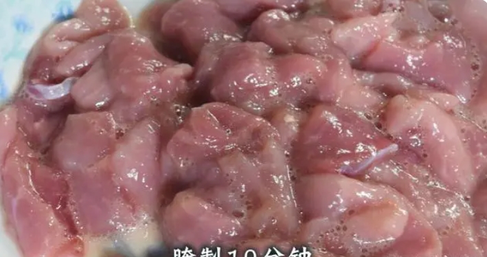 食材準(zhǔn)備好之后,我們先來處理食材,里脊肉買回來之后,清洗干凈表面的灰塵,然后切成薄片,再加入1茶匙食鹽,加入1湯匙生抽,加入1個(gè)雞蛋,加入1湯匙耗油,加入1湯匙的淀粉,然后用你干凈的小手抓勻,腌制10分鐘,備用!