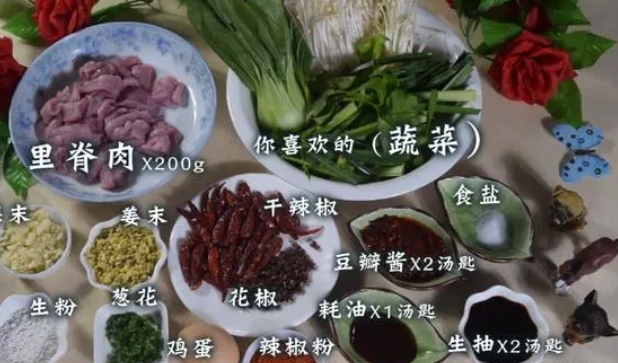 在開始烹飪之前,我們需要先準(zhǔn)備以下食材: 里脊肉 X 200g 蔬菜 X 適量(什么蔬菜都可以,你喜歡吃的就行) 雞蛋 X 1個(gè) 蒜末,姜末,生粉,蔥花,干辣椒,花椒,辣椒粉,豆瓣醬,耗油,食鹽,生抽 X 適量(詳細(xì)用量請看內(nèi)文的使用操作過程)