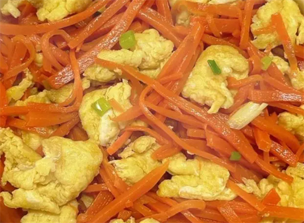 1. 胡蘿卜炒雞蛋 這道菜清爽健康,富含胡蘿卜素和蛋白質,營養均衡。將胡蘿卜切成絲,煎雞蛋翻散備用,再加入蒜末和胡蘿卜絲翻炒均勻,最后加入食鹽、蠔油和雞精調味,撒上蔥花即可上桌開吃。 2. 芹菜炒蝦仁 這道菜色彩鮮艷,口感爽脆,富含維生素和蛋白質。將芹菜切成小段,蝦仁清洗干凈備用,焯水后加入蒜末和小米辣翻炒均勻,最后加入蠔油、食鹽調味即可。 3. 木須肉 這道菜口感鮮嫩,色香味俱佳,富含蛋白質和多種維生素。將瘦肉切成片,加入料酒、生抽、食用油、淀粉腌制,胡蘿卜和黑木耳焯水備用,最后加入食鹽、生抽、蠔油調味,快速翻炒均勻入味,淋入水淀粉勾芡即可。