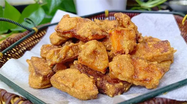 三、注意事項 1.南瓜切成的條不宜過薄、過細,否則容易炸散。 2.南瓜先用開水煮一下,能去除異味和斷生,同時炸的時候也易熟。 3.放入一個雞蛋黃,炸出來的南瓜顏色更加金黃好看,而且雞蛋黃還可以讓南瓜更加香。 4.使用玉米淀粉和面粉的比例是一半一半,這樣炸出來的南瓜口感酥脆,而且既不軟也不硬。 除了以上幾點,還有一些小貼士可以讓香酥南瓜更加美味: 1.可以使用廚房紙巾將多余的油脂吸干,這樣可以讓南瓜更加健康。 2.炸好的南瓜可以配上一些調料,如椒鹽或者西紅柿醬,可以增加口感和味道。