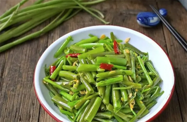 【推薦食譜——清炒空心菜】 所需的材料有:空心菜300克,蒜末適量,鹽適量,食用油適量。 具體的制作步驟: 1.準備好空心菜,洗凈以后,先將空心菜的葉子和莖分開,然后再把莖切成段狀備用。 2.燒開一鍋水,水開以后先將莖放進去焯水。 3.焯好以后取出,放入冰水中浸泡,這樣做可以使其保持爽脆口感,同時也能保證空心菜的顏色不變。 4.起鍋燒油,等油熱以后先放入蒜末進去爆香。 5.然后往鍋中加入焯好的莖,開大火把它們翻炒均勻。 6.最后往鍋中加入少量鹽,放入空心菜的葉子,把它們翻炒均勻入味,即可關火出鍋。