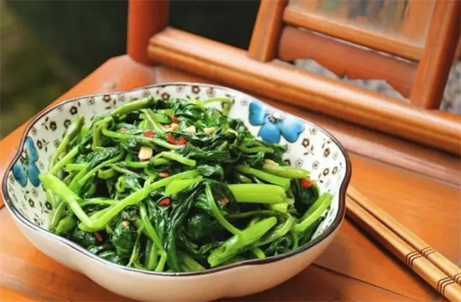 【空心菜的營養價值】 1.富含維生素和礦物質:空心菜中含有豐富的維生素C、鈣、鐵、磷、鎂、鋅等礦物質,以及葉綠素等多種營養成分。 2.促進血液循環:空心菜中的鐵元素可促進血紅蛋白的生成,有益于血液循環。同時,它也是一種富含葉綠素的蔬菜,可以提高氧氣的輸送能力。 3.降低膽固醇:空心菜含有大量的水溶性膳食纖維,可以有效降低膽固醇,保持心血管健康。 4.增強免疫力:空心菜含有豐富的維生素C和β-胡蘿卜素,可以提高人體免疫力,預防感染。 5.有利尿消腫的功效:空心菜中含有豐富的鉀元素和水分,可以起到利尿的作用,幫助排除體內多余水分和廢物。 除此之外,空心菜熱量低、營養豐富,具有一定的清腸排毒功效,其中含有的膳食纖維可以幫助我們身體促進腸道蠕動,幫助排出體內垃圾和毒素,同時也有助于減少腸內脂肪的吸收。總之,空心菜是一種非常健康的蔬菜,每天適量食用不僅可以補充多種營養物質,還能幫助維持身體健康。 接下來我們就給大家分享空心菜的做法,隨手一炒,營養美味又清腸刮油,你一定要試試!