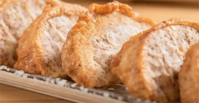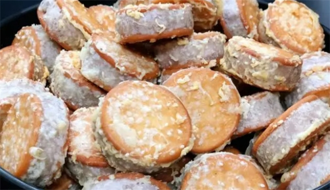 芋頭餅 【材料】 芋頭500克,糖60克。早餐餅,芝麻少許,香炸粉,油。 【做法】 1、芋頭去皮,切塊。鍋里燒水,水開后放入芋頭蒸30分鐘。 2、芋頭蒸熟后搗碎成芋泥,按500克芋泥,配60克糖的比例把糖和芋泥混合均勻。 3、芋泥放涼后再夾上早餐餅。 4、用香炸粉加水,加少許油,少許芝麻,調(diào)成酸奶狀態(tài)的那種糊狀。 5、鍋中放油,油稍微冒泡就把芋頭餅裹滿油炸糊后放入油鍋, 一定要小火慢炸,炸糊表皮酥脆了就可以起鍋了。