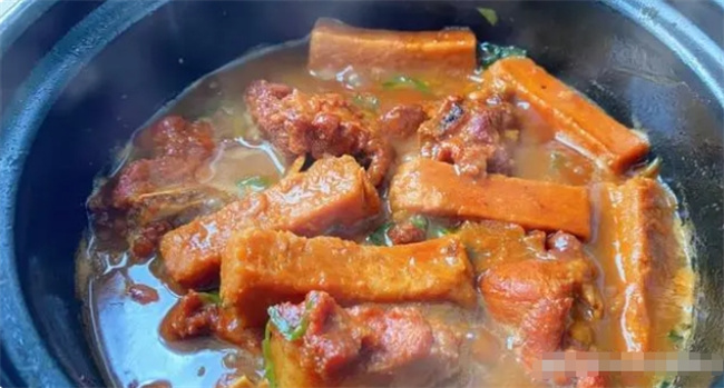芋頭排骨煲 【材料】 排骨、荔浦芋頭、蔥、蒜 【做法】 1、排骨洗凈加半勺蠔油、2勺生抽、少許鹽和2勺生粉抓勻腌制30分鐘 2、芋頭切塊,蔥切段,大蒜切小塊備用 3、起鍋燒油,油燒至五成熱下芋頭,炸至表面金黃撈出備用,然后下入蔥段和蒜粒爆香后撈出 4、接著鍋里繼續(xù)放入排骨煎,煎至表面焦黃,可以看到肉質(zhì)明顯收縮,撈出備用 5、鍋留底油下幾顆冰糖炒出糖色,倒入排骨翻炒上色后轉(zhuǎn)入芋頭墊底的砂鍋中 6、倒入剛剛炸好的蒜粒和蔥段,加入適量的熱水,砂鍋蓋蓋中小火燜煮20分鐘即可。
