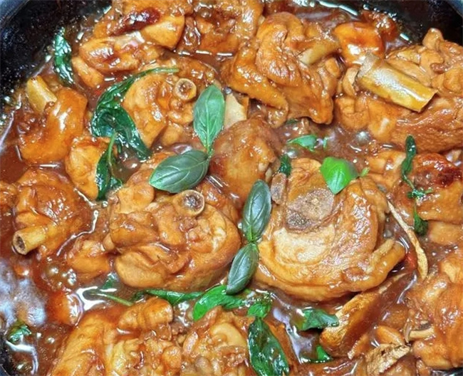 香噴噴的三杯雞 材料:雞腿、羅勒(或九層塔)、蒜頭、生姜、小米辣、麻油、生抽、老抽、米酒 做法:1、料頭備好,可以都量大一點(diǎn),調(diào)料按圖片比例準(zhǔn)備好。 2、砂鍋燒麻油,油熱煸香蒜頭和姜片。下入雞塊翻炒至表面略微上。淋入醬油和米酒。 3、大火煮開后,蓋蓋轉(zhuǎn)中火煮8分鐘。開蓋視情況略微大火收汁。 4、湯汁略濃稠后加入羅勒葉和小米辣。蓋上鍋蓋轉(zhuǎn)中火,沿鍋蓋淋一圈米酒,再煮一分鐘即可。 5、開蓋可以再拌入一些羅勒增加香氣的層次感。