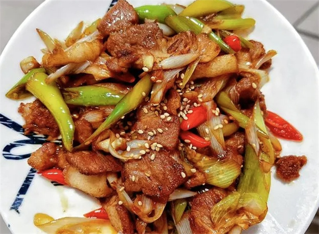 大蔥炒肉 食材及準(zhǔn)備:肉片(五花肉或梅花肉)、大蔥白、姜蒜、青紅辣椒、老抽、生抽、蠔油、鹽、糖他、花椒粉或十三香、雞精 1、所有食材改刀備用 2、熱鍋熱油,中火,肉片炒至變色,炒出油脂 3、加入所有配料轉(zhuǎn)大火翻炒均勻,配料炒至斷生后,沿鍋邊烹1勺料酒 4、翻炒均勻后轉(zhuǎn)最小火加調(diào)料:1勺老抽、2勺生抽、半勺蠔油、1勺鹽、1勺糖、花椒粉或十三香,加完調(diào)料后,轉(zhuǎn)最大火翻炒1分鐘左右 5、出鍋前加雞精即可 換成牛肉、羊肉都可以,我竟然覺得大蔥比肉香!又是狂干飯的一餐!